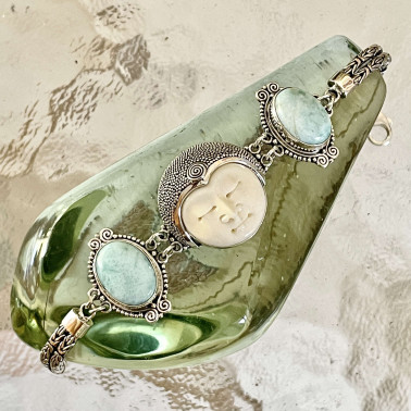 Beautiful Balinese handmade 925 silver bone face bracelet with hand carving buffalo bone and larimar