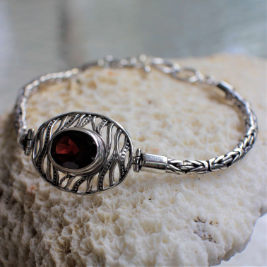 Unique and Beautiful Handmade 925 Sterling Silver Chain Bracelet. The length is between 18 to 19 cm and comes with Garnet