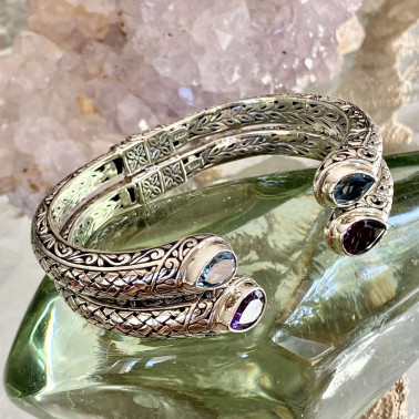 Handmade 925 Bali Sterling Silver Hinge Cuff Bracelets With GARNET, The widest inner size is 60 mm. This bracelet has hinges for easy wearing. Also available with PERIDOT