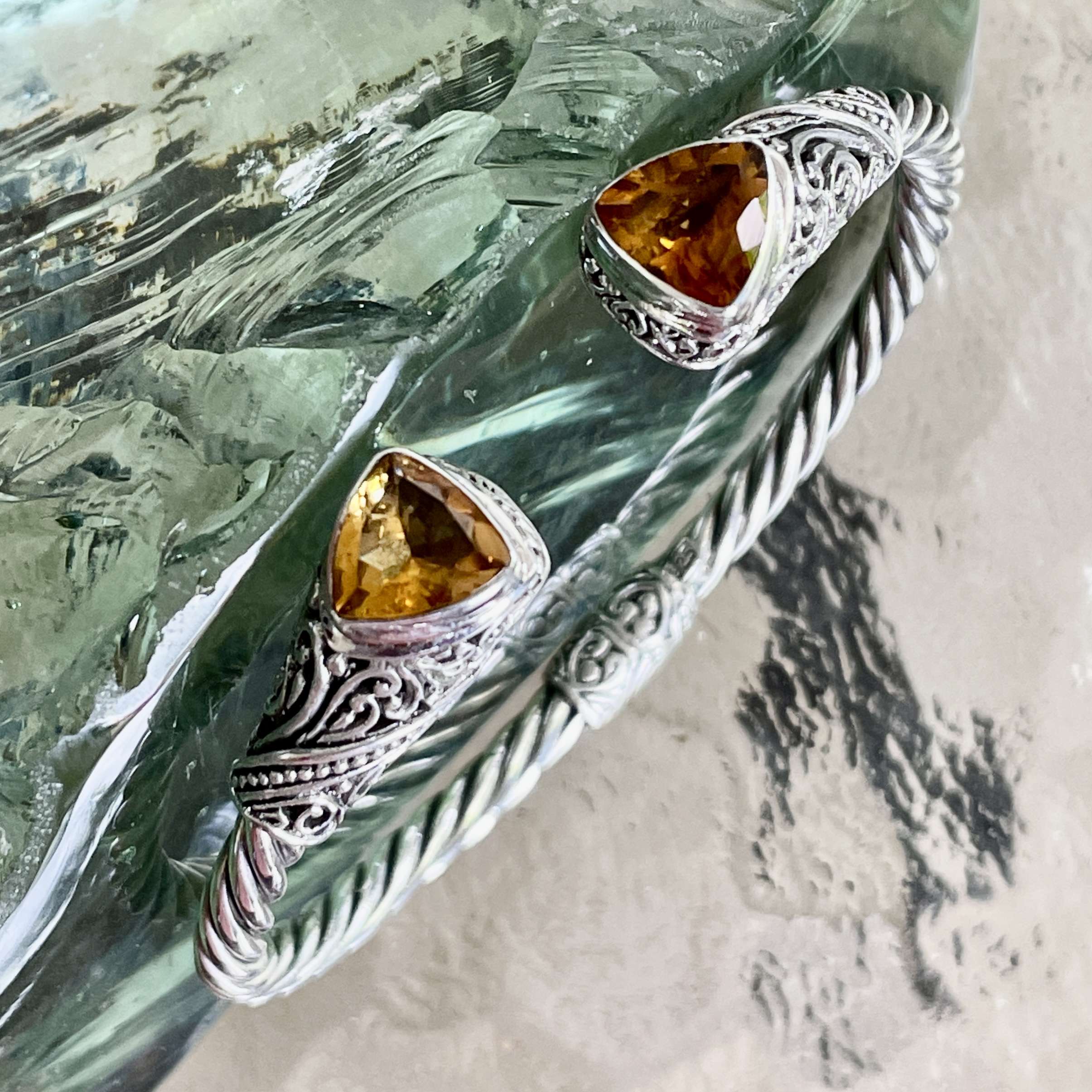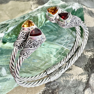 Handmade 925 Bali Sterling Silver Hinge Cuff Bracelets With CITRINE. The widest inner size is 60 mm. This bracelet has hinges for easy wearing. Also available with GARNET