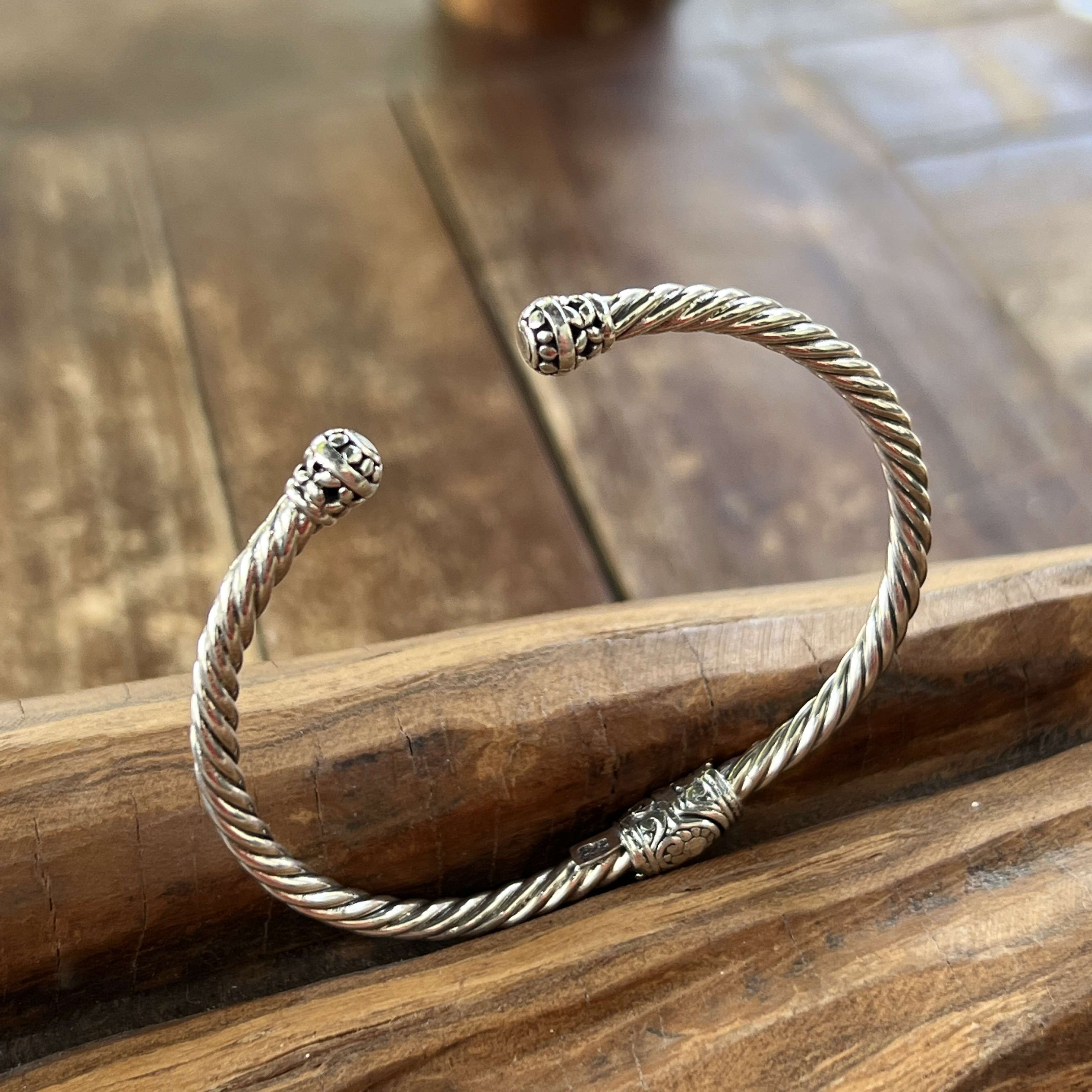 Handmade 925 Bali Sterling Silver Hinge Cuff Bracelets.. The widest inner size is 58 mm. This bracelet has hinges for easy wearing.