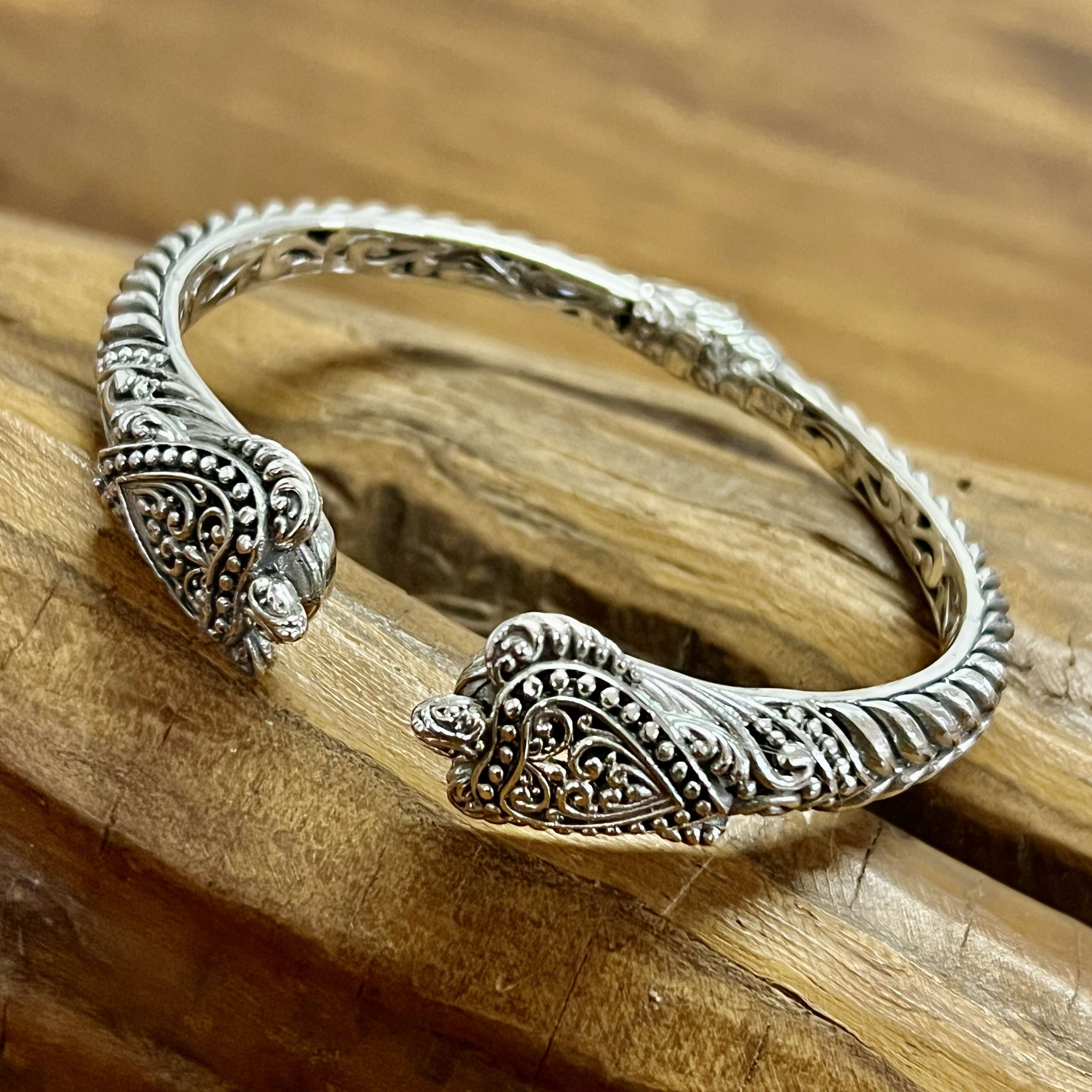 HANDMADE 925 BALI STERLING SILVER FILIGREE HINGED TURTLE CUFF BRACELET.