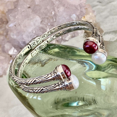 Handmade 925 Bali Sterling Silver Hinge Cuff Bracelets With brown pearl. The widest inner size is 60 mm. This bracelet has hinges for easy wearing. Also available with white pearl