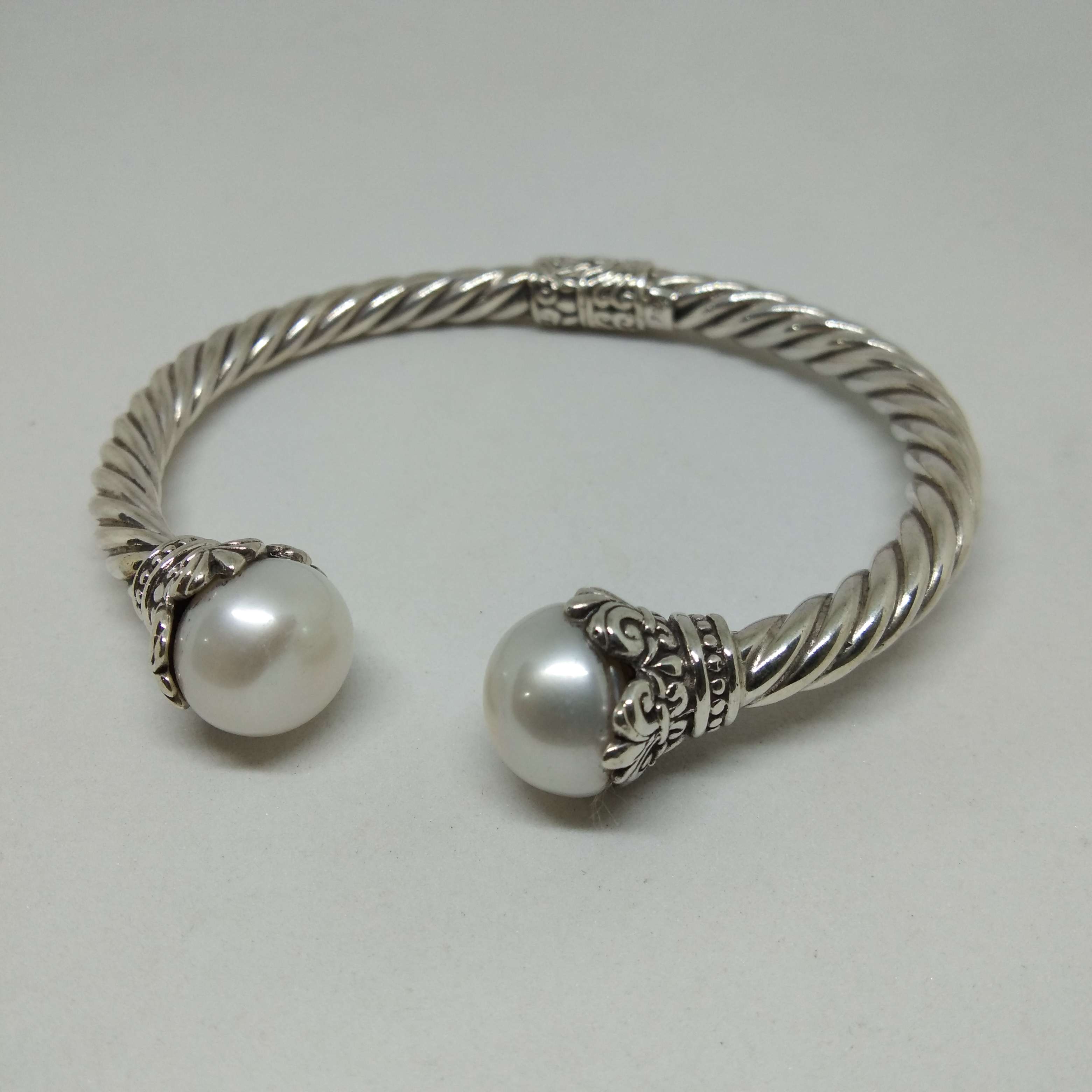 Beautiful balinese handmade 925 silver cuff bracelet with Mabe Pearl.