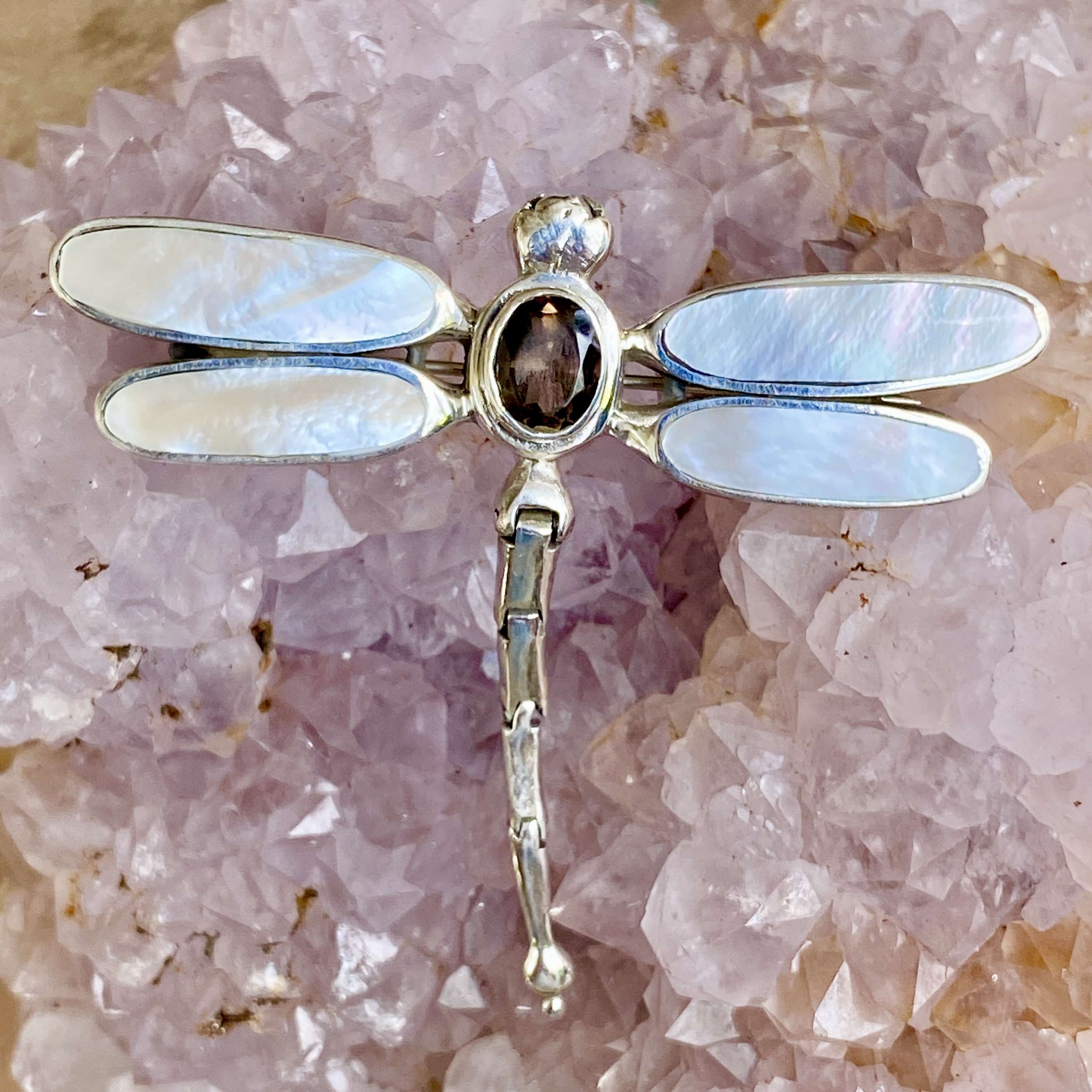 (HANDMADE 925 BALI SILVER DRAGONFLY PENDANT WITH SMOKEY AND MOP)