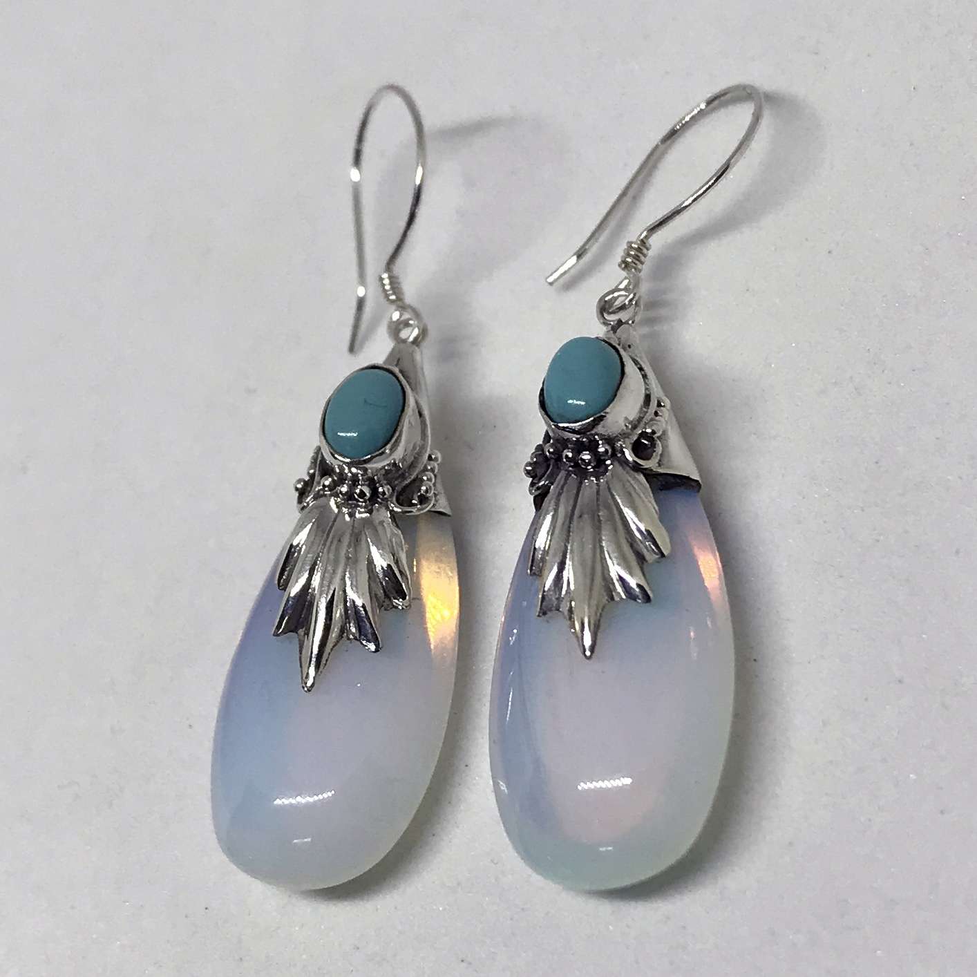 Unique 925 Bali Silver Earrings with TURQOUISE and OPALITE