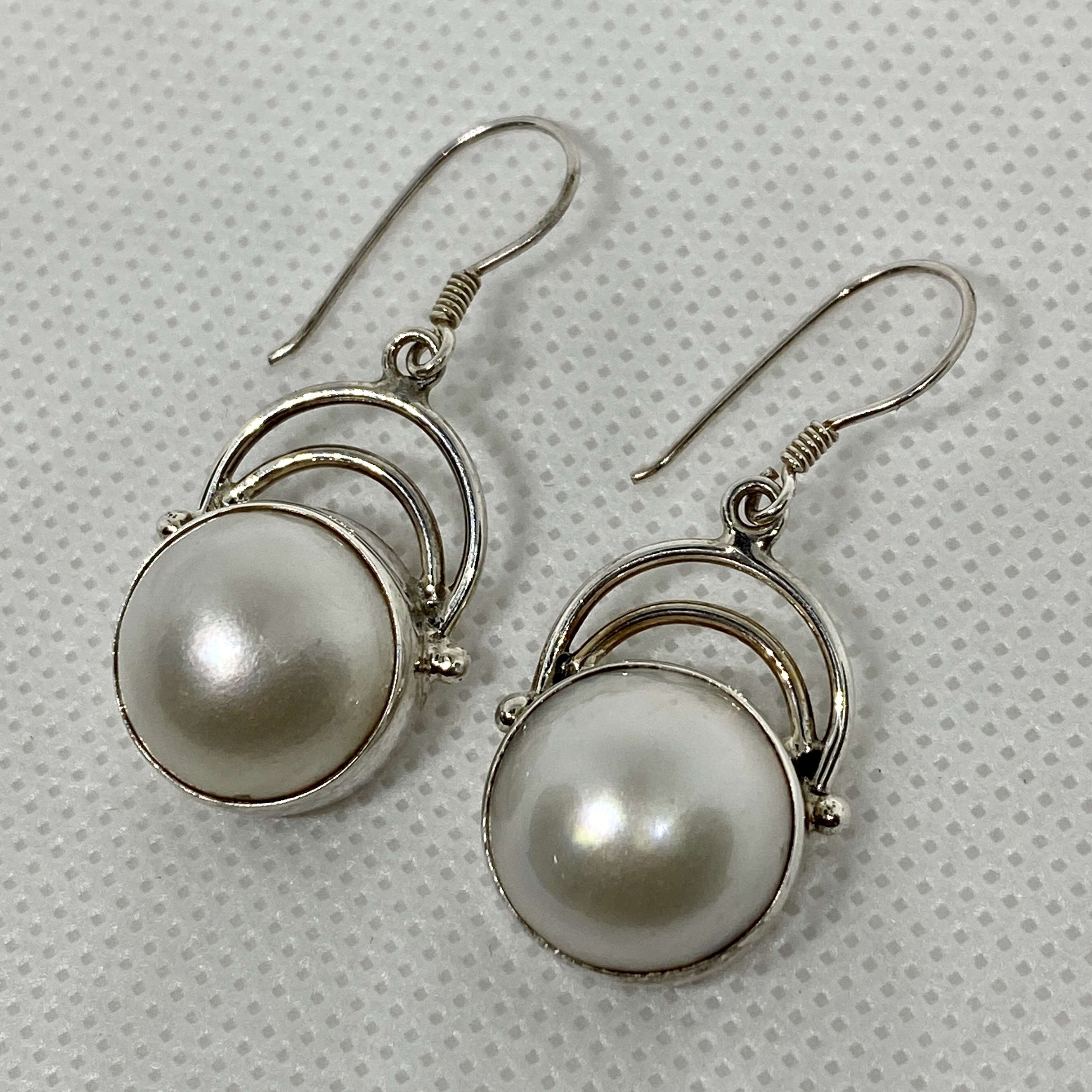 Beautiful Balinese 925 Silver Earrings with mabe pearl