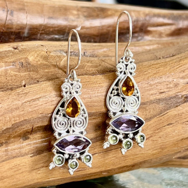 Unique Handmade 925 Bali Sterling Silver Earrings With Mix Stones.
