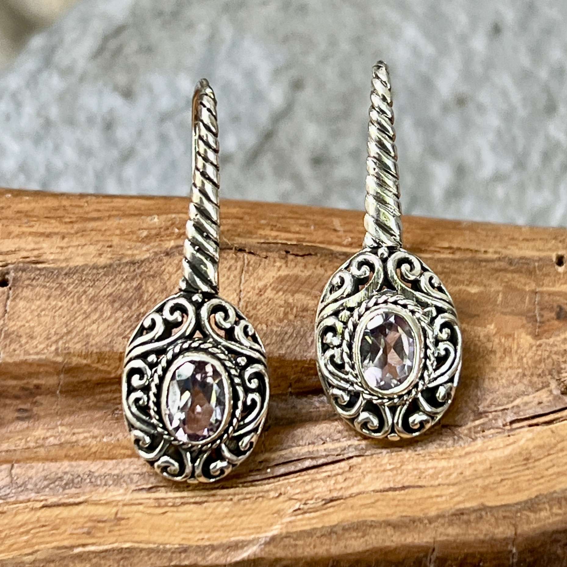 Unique and beautiful 925 Bali Silver Earrings with AMETHYST