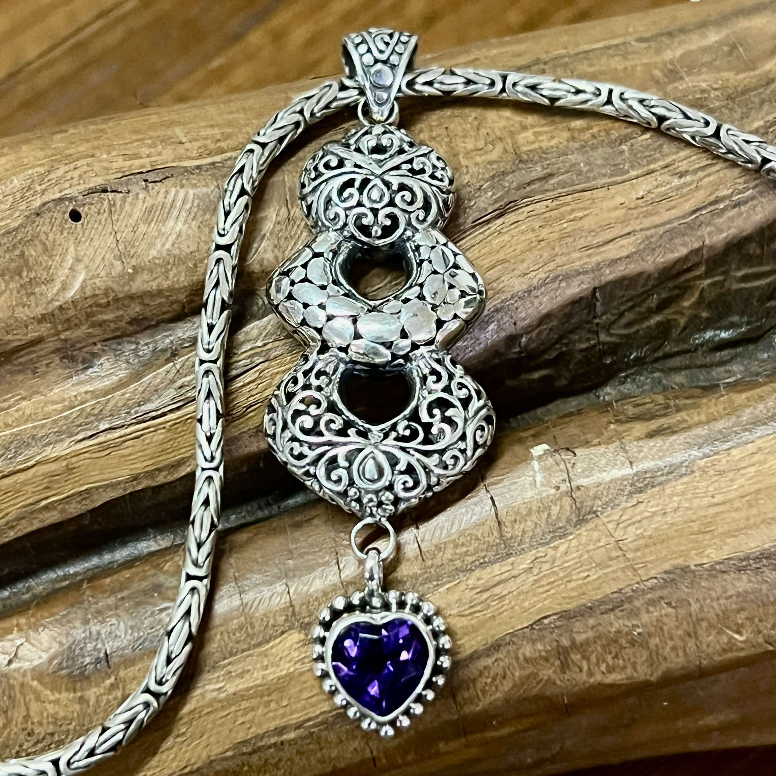 Unique and beautiful 925 Bali Silver Pendant with AMETHYST