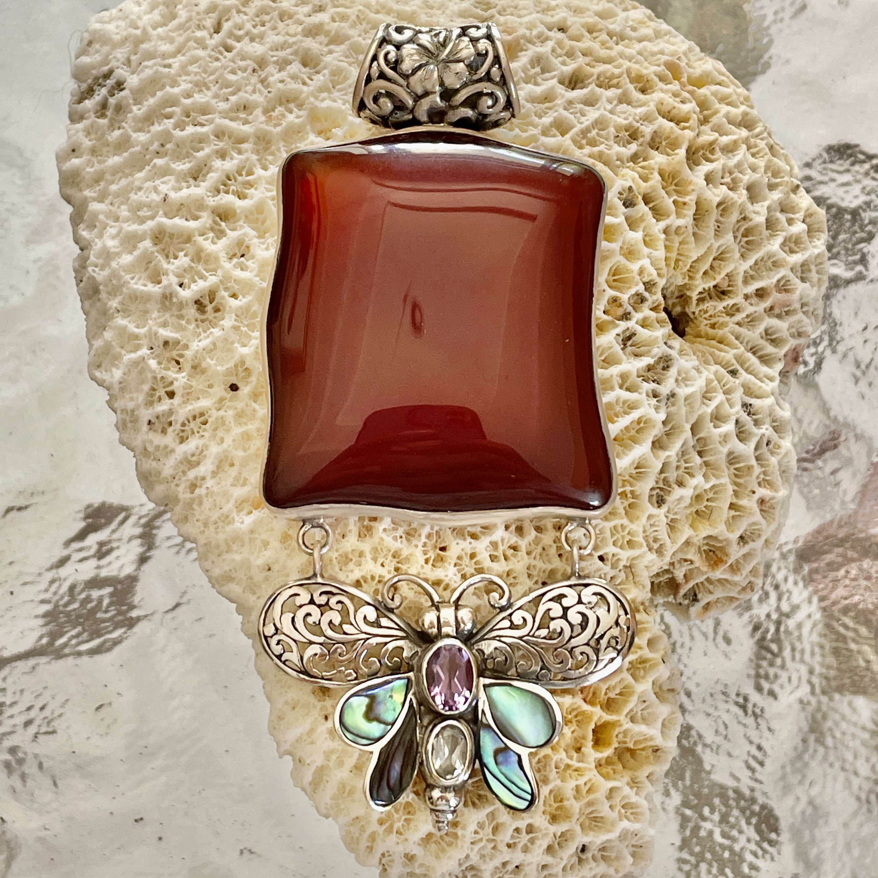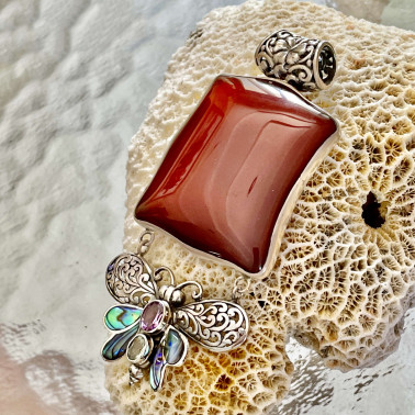 Beautiful Balinese handmade 925 silver Pendants with Carnelian and Abalone
