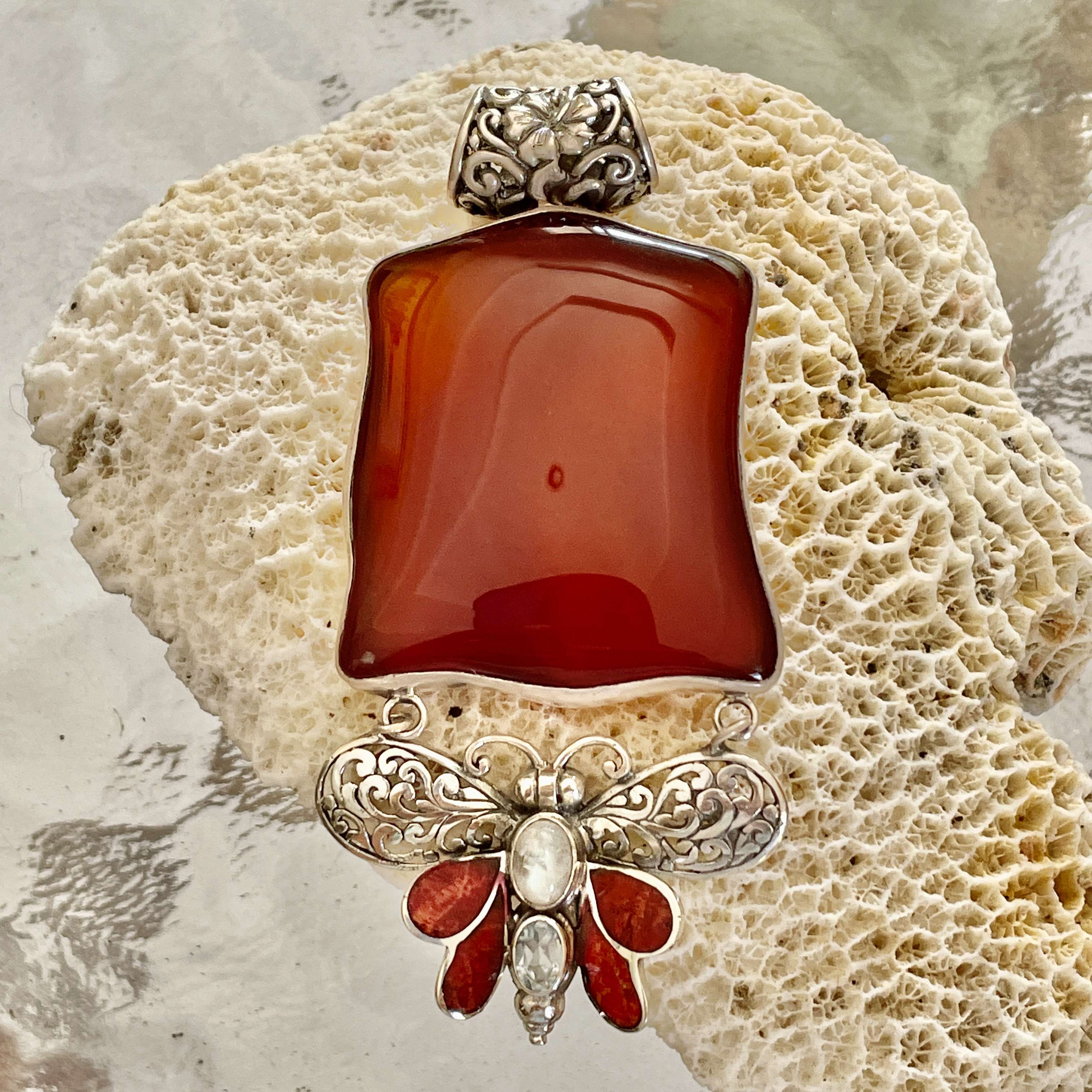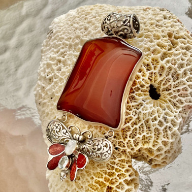 Beautiful Balinese handmade 925 silver Pendants with Carnelian and Coral