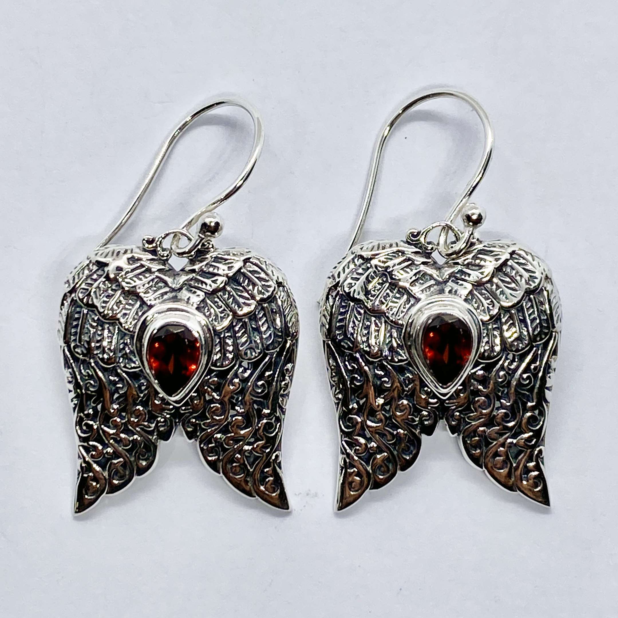 Beautiful Balinese Hand Carving 925 Silver Earrings with Garnet