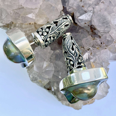 Unique Handmade 925 Bali Silver Large Filigree Stud Earrings with MABE PEARL SHELL