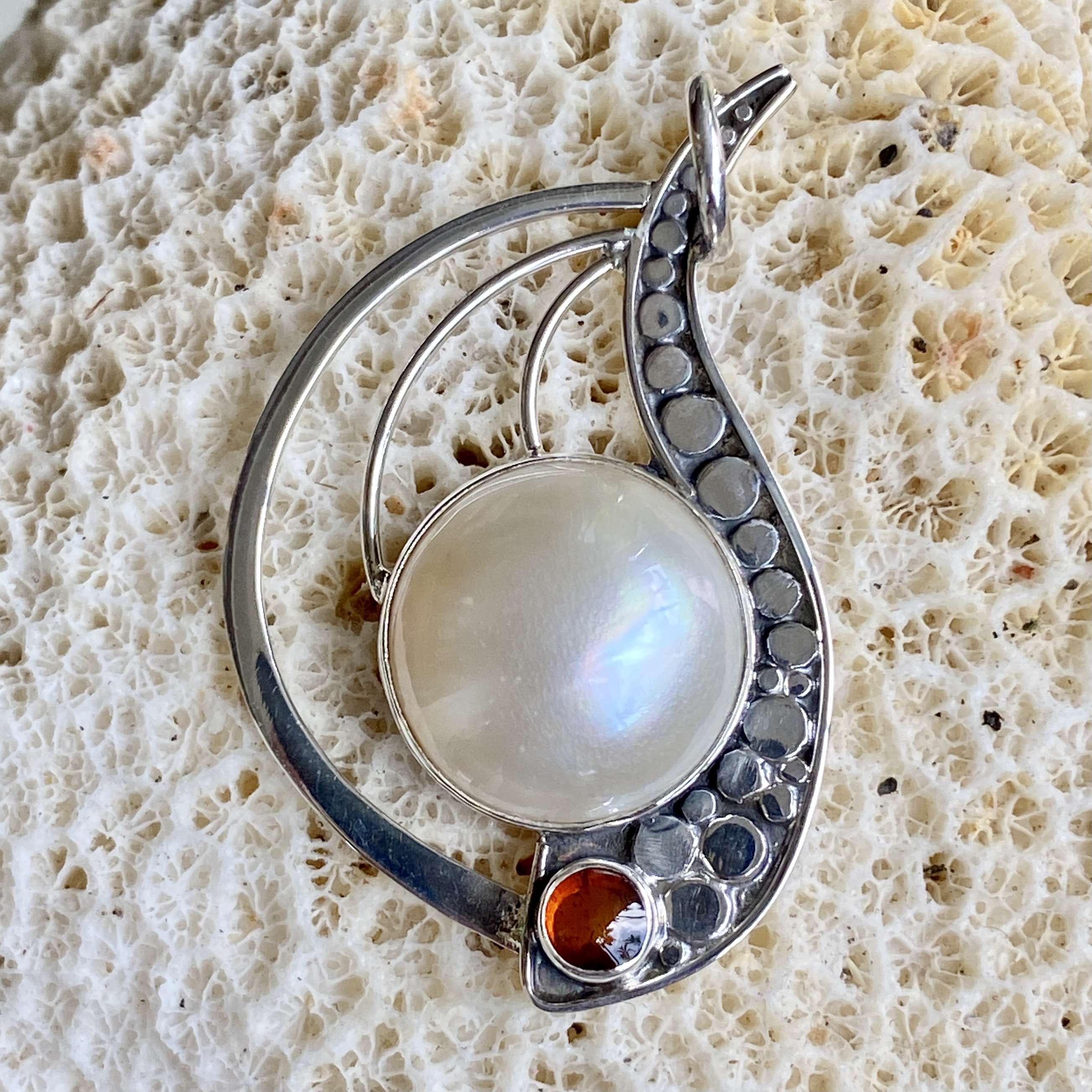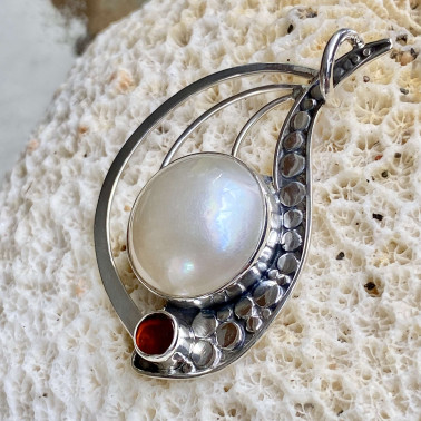 PD 14831 B-(HANDMADE 925 BALI STERLING SILVER PENDANTS WITH WHITE MABE PEARL)