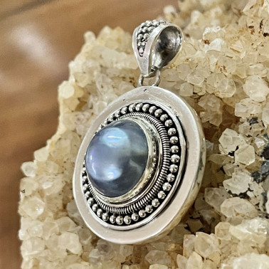Beautiful Balinese Handmade 925 Silver Pendant with BLUE MABE PEARL