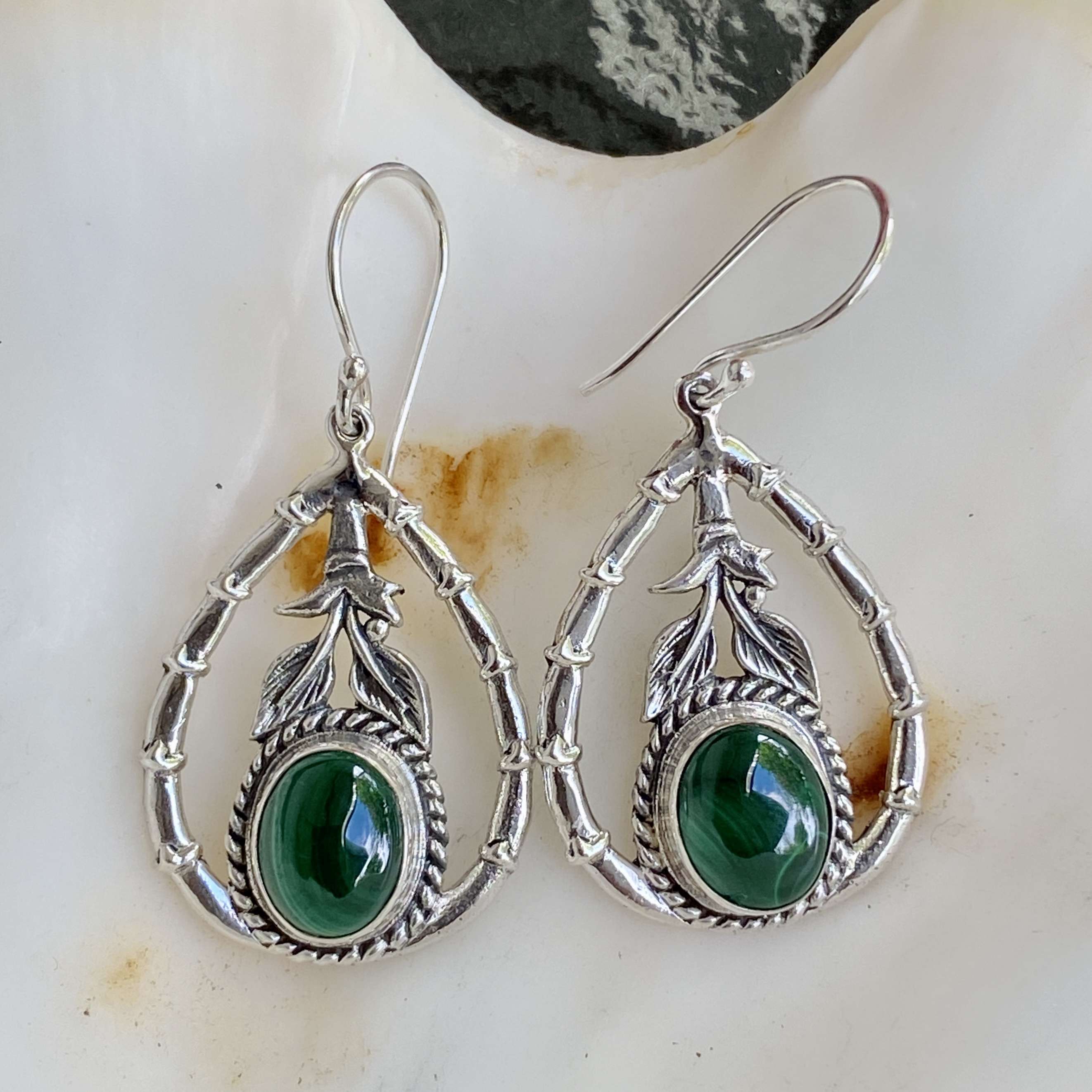 Beautiful Handmade 925 Bali Silver Earrings with Malachite