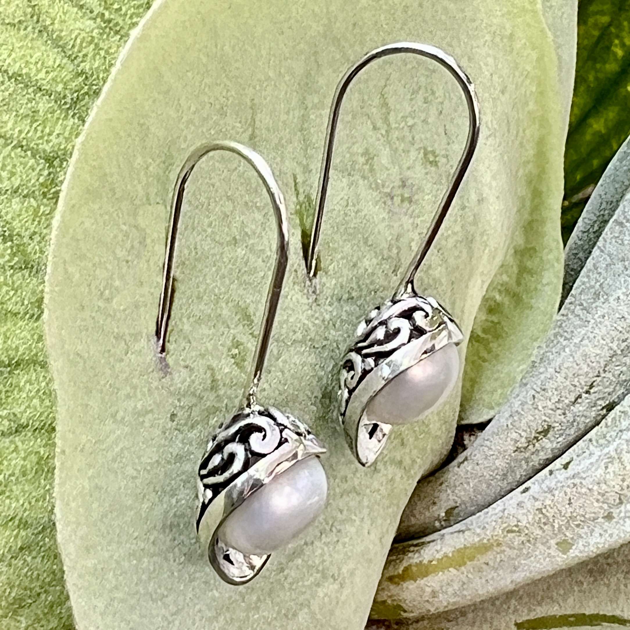 Unique and beautiful 925 Bali Silver Earrings with WHITE PEARL