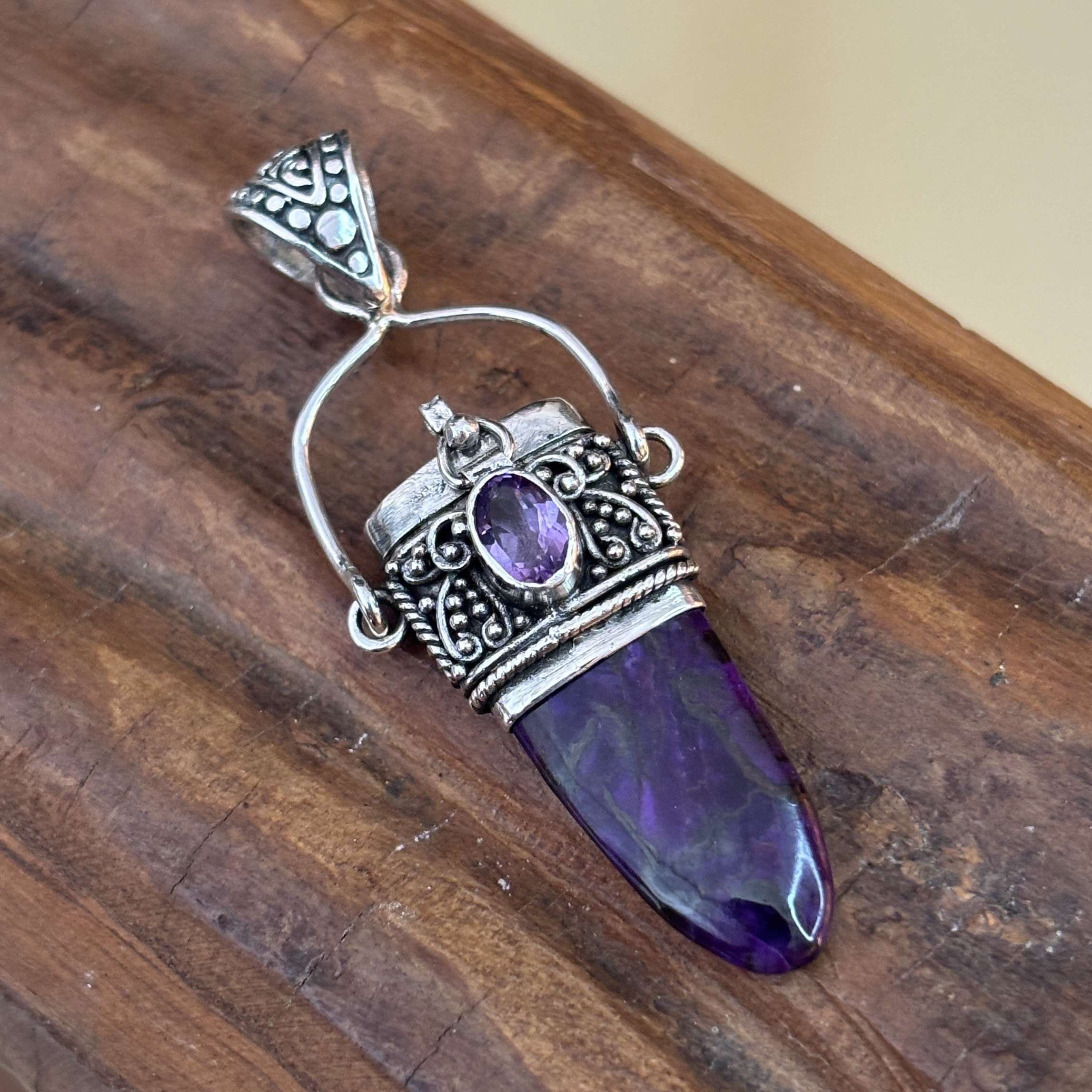 Unique and beautiful 925 Bali Silver Filigree Pendant With Sujilite