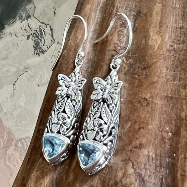 Beautiful Balinese 925 Silver Butterfly Earrings with Blue Topaz.
