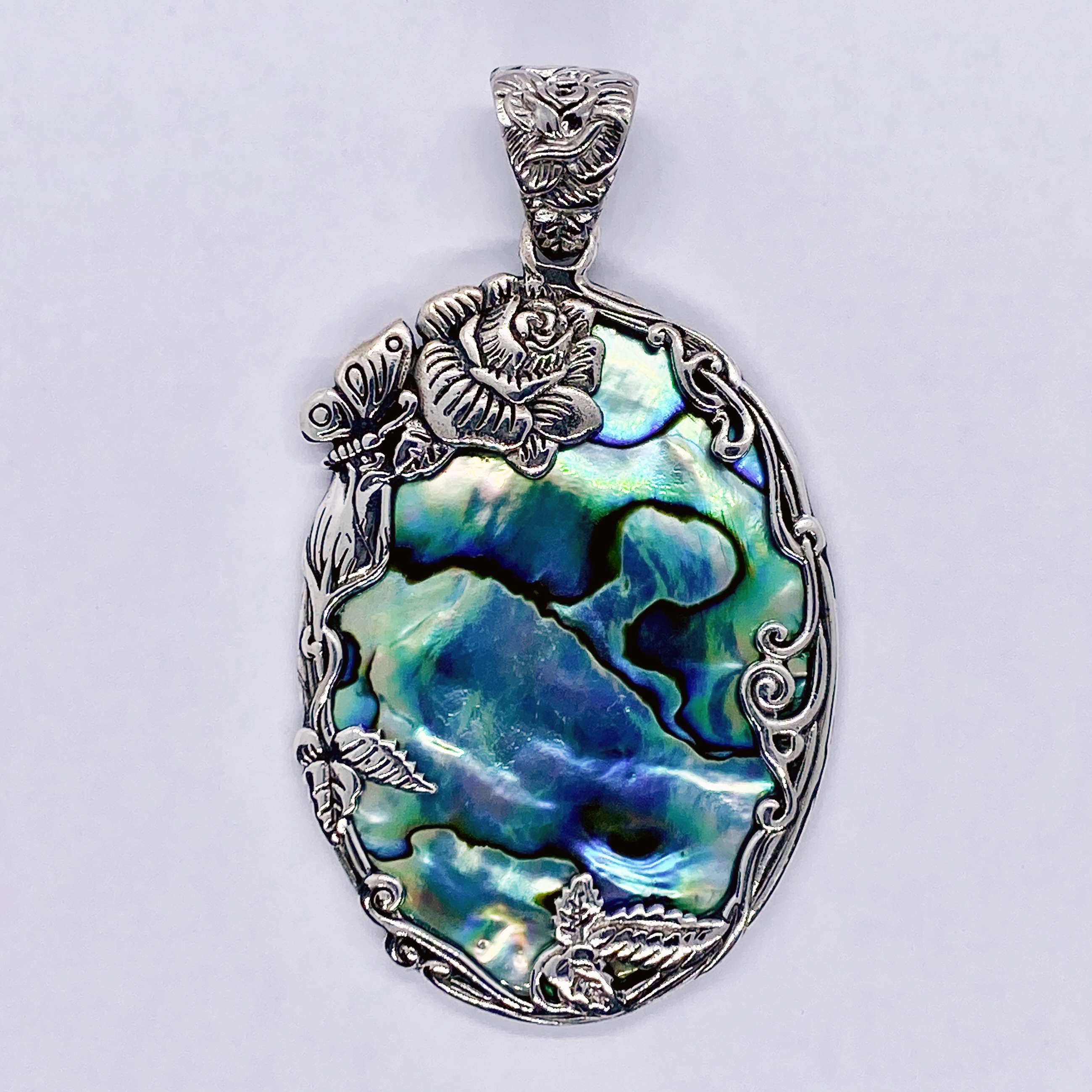 Unique and Beautiful 925 Bali Sterling Silver Daisy Lotus Pendant with ABALONE. Also available in RED CORAL.