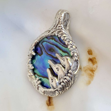 Beautiful Balinese Handmade 925 Sterling Silver Dolphin Pendants with ABALONE.