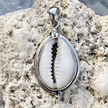 Beautiful Handmade 925 Bali Sterling Silver Pendant with Large COWRIE Shell.