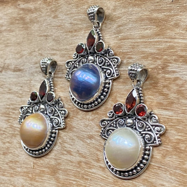 HANDMADE 925 BALI STERLING SILVER FILIGREE PENDANTS WITH MABE PEARL