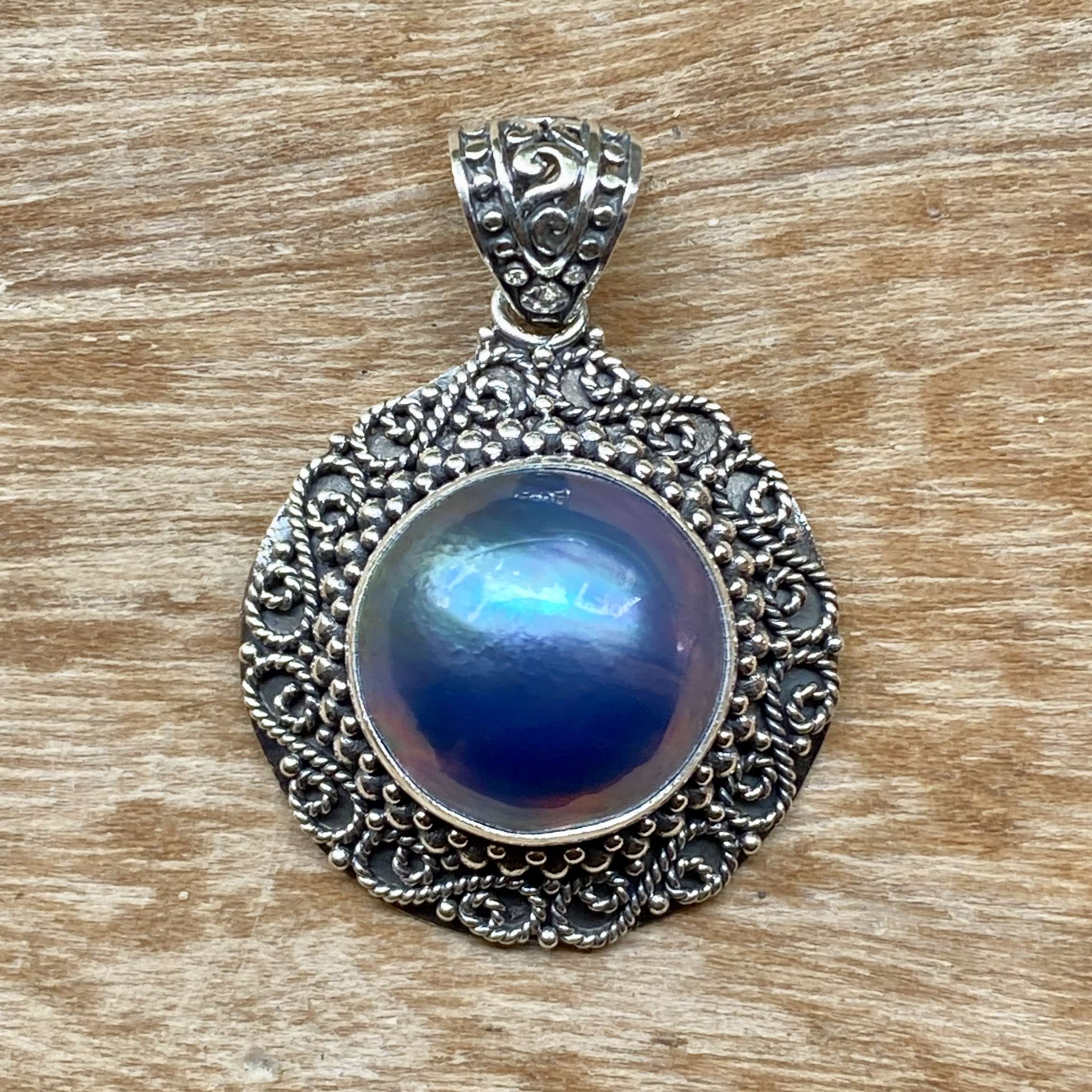 HANDMADE 925 BALI STERLING SILVER FILIGREE PENDANTS WITH MABE PEARL