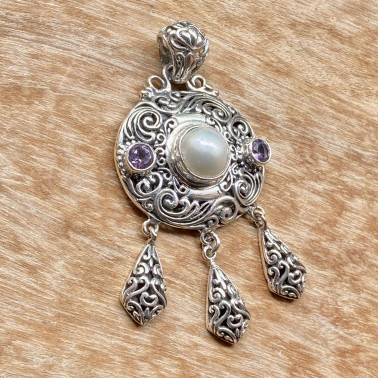 PD 15279 WPL-(HANDMADE 925 BALI SILVER FILIGREE PENDANTS WITH MABE PEARL)