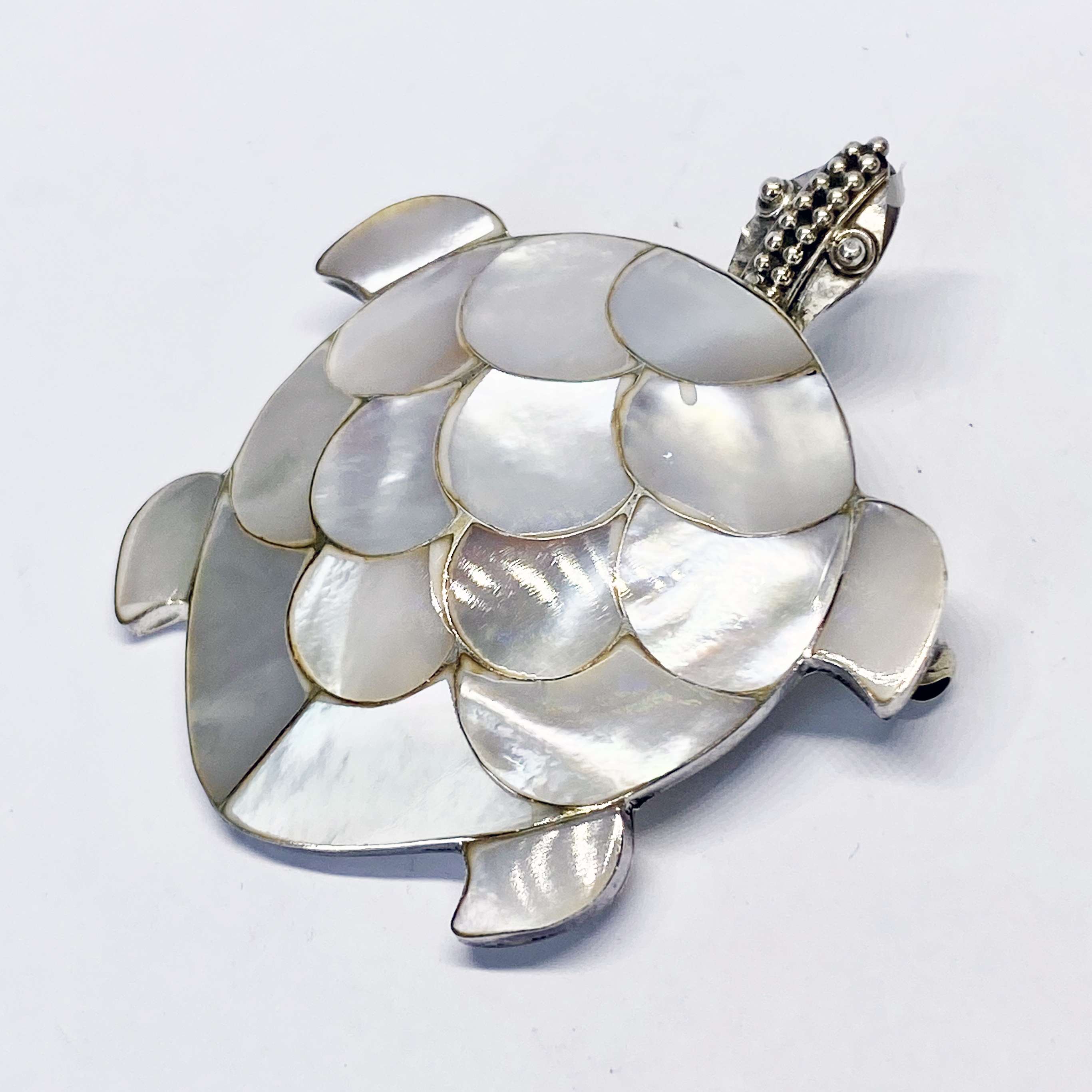 Unique and Beautiful Handmade 925 Bali silver Turtle brooch pendant with Mother of Pearl.
