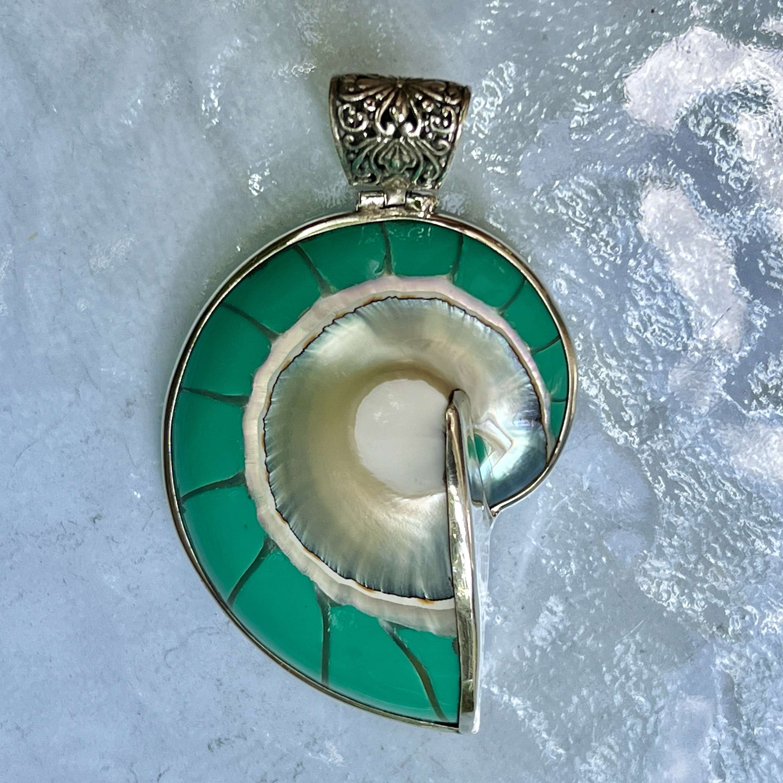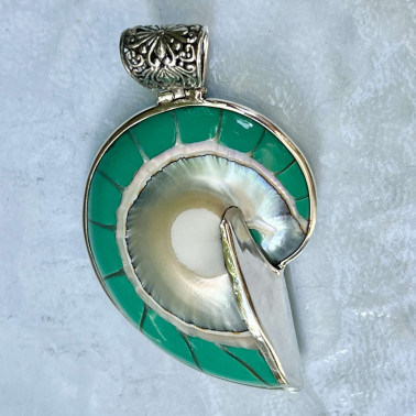 Beautiful Balinese 925 Silver Pendants with natural Tosca NAUTILUS Shell.