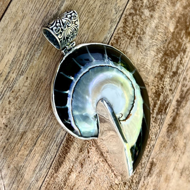 Beautiful Balinese 925 Silver Pendants with natural Black NAUTILUS Shell.