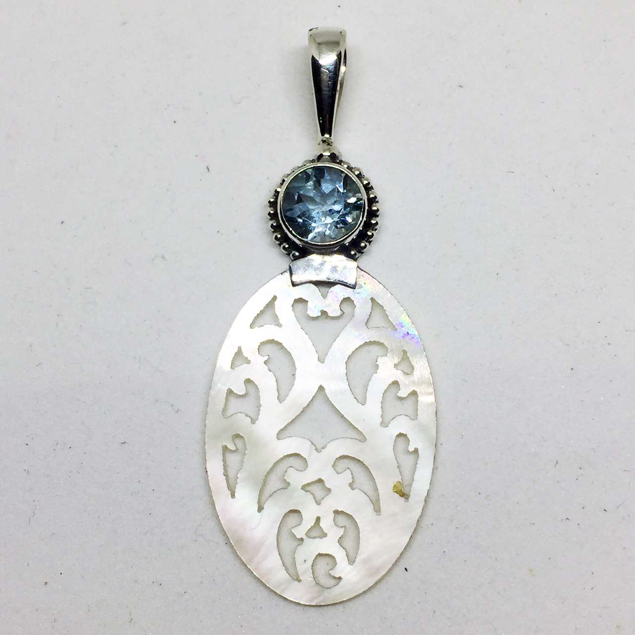 Unique 925 Bali silver hand carving shell pendant with TOPAZ.