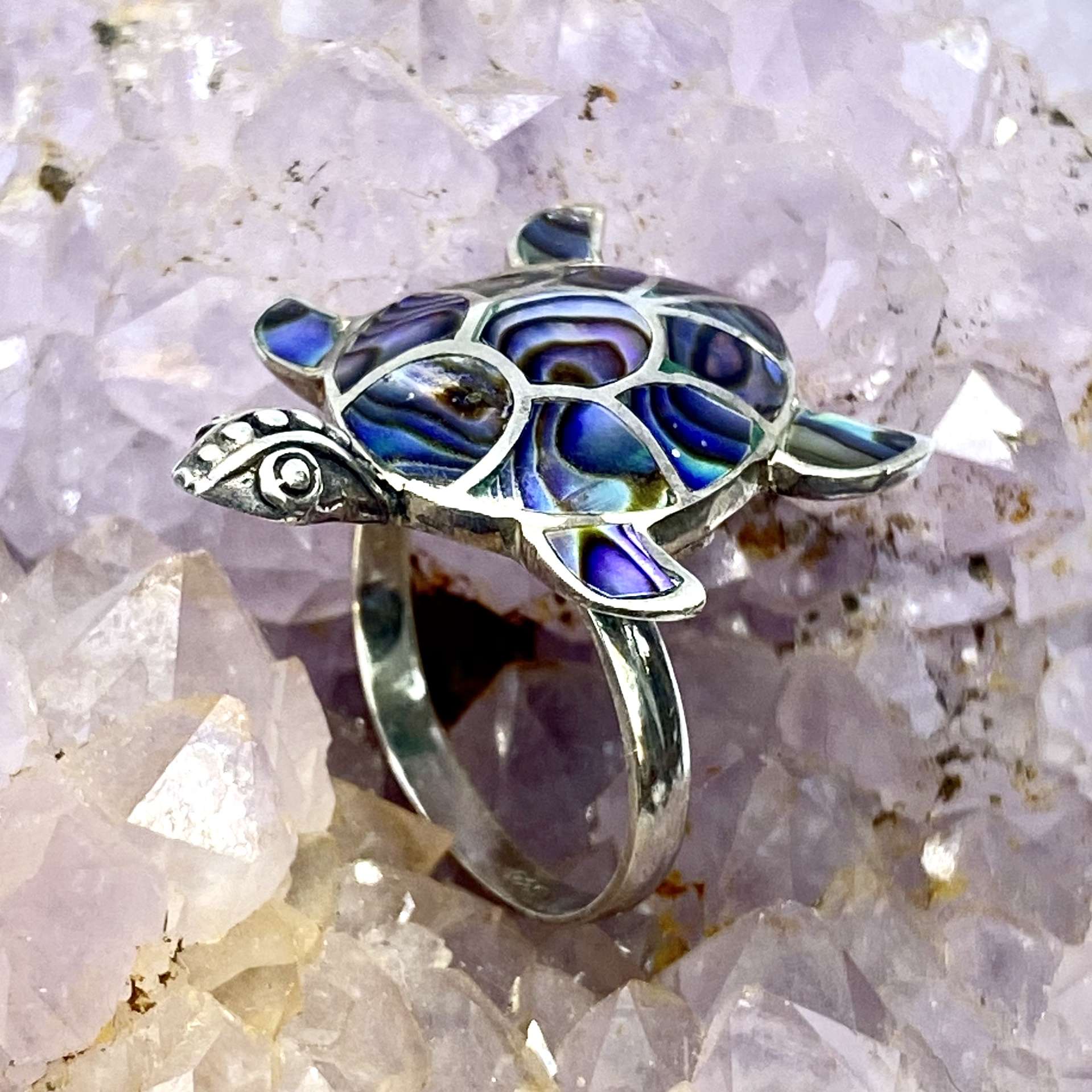 RR 05326 AB-(HANDMADE 925 BALI SILVER TURTLE RING WITH ABALONE)
