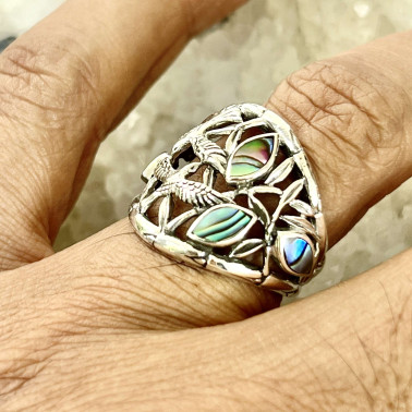 Unique Handmade 925 Bali Sterling Silver Bird Rings With Abalone.