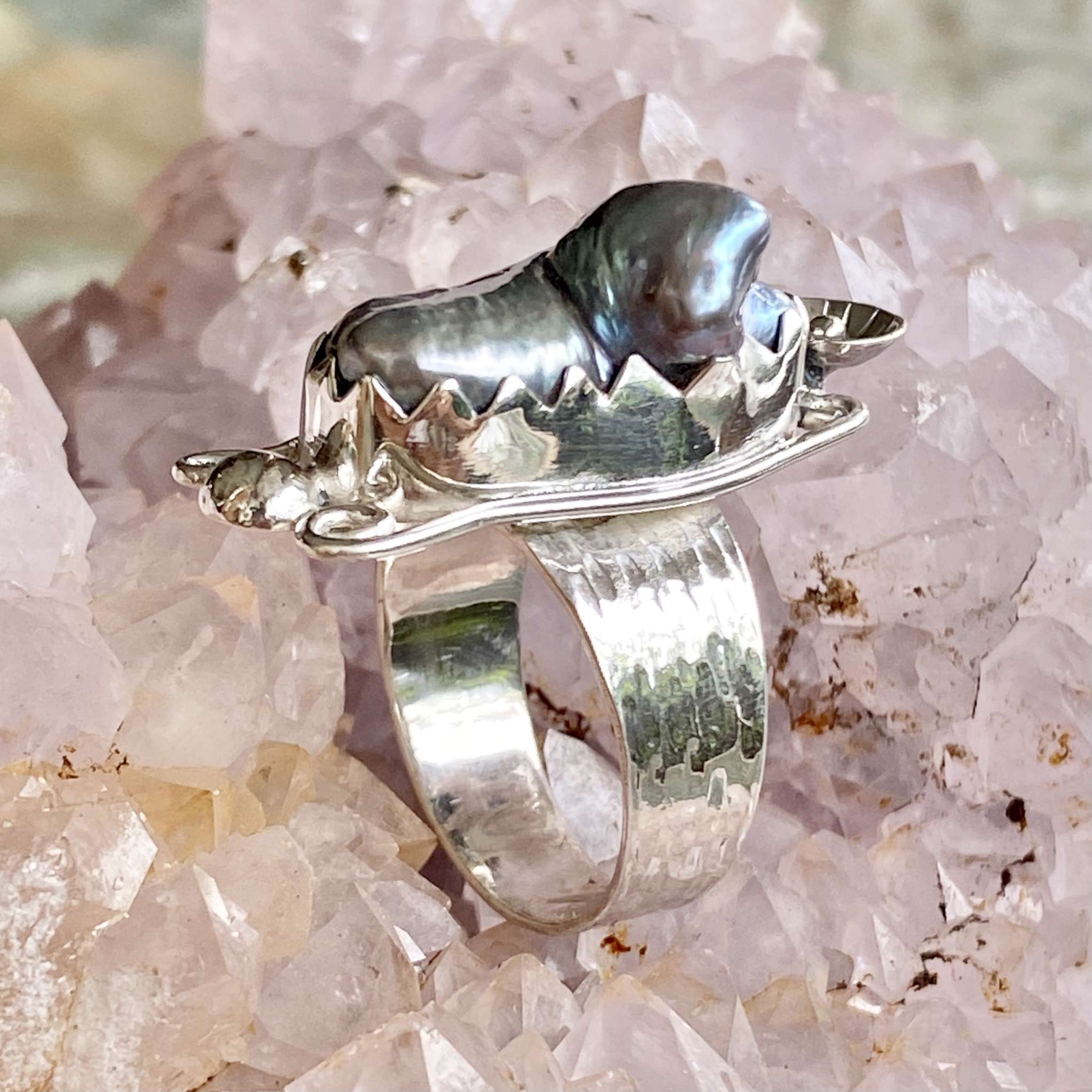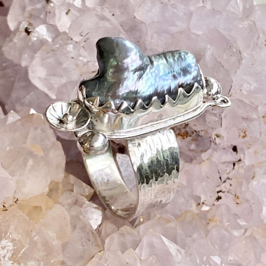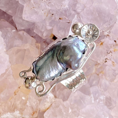 Unique Handmade 925 Bali Silver Ring with BAROQUE PEARL