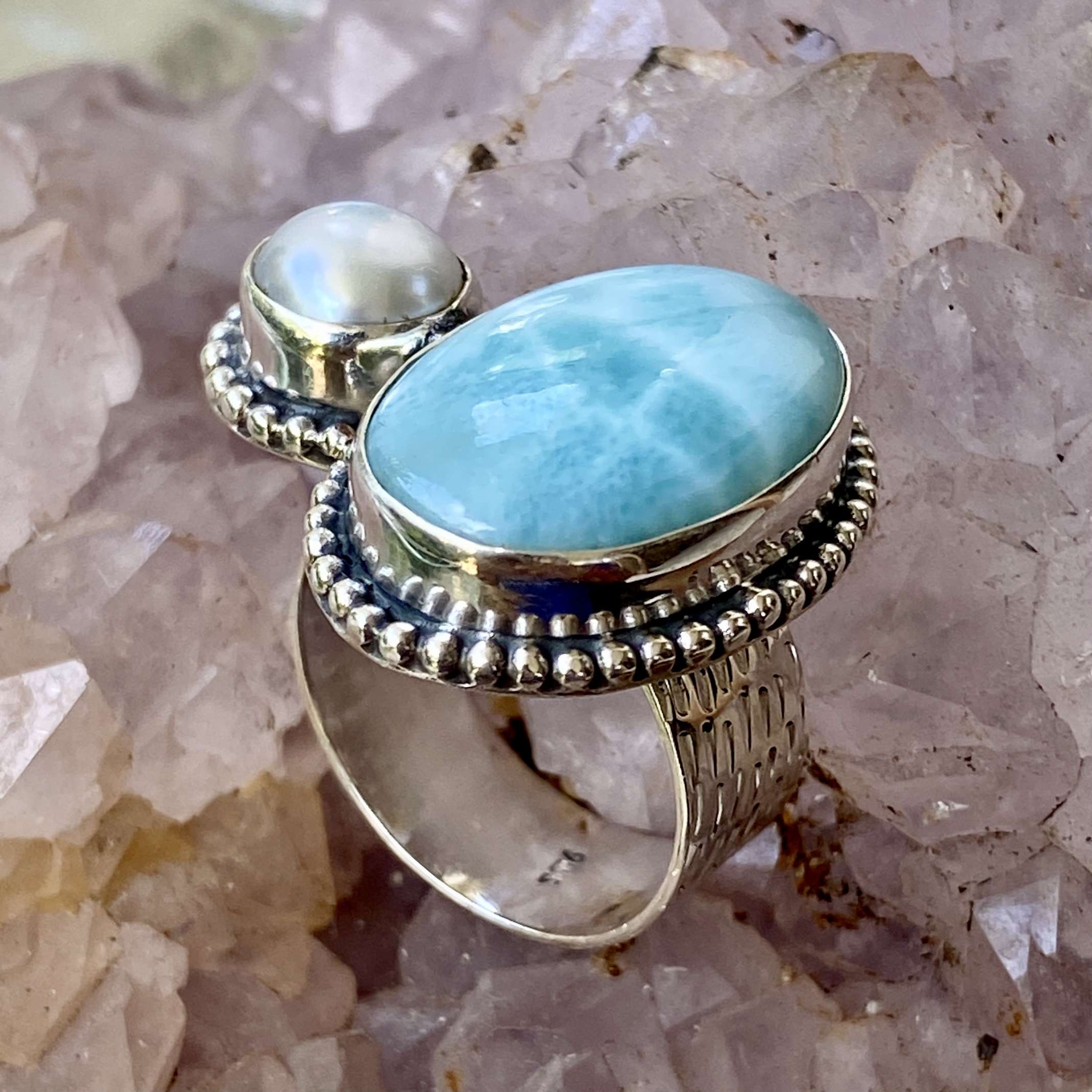 HANDMADE 925 BALI STERLING SILVER FILIGREE RINGS WITH LARIMAR Available Free Size