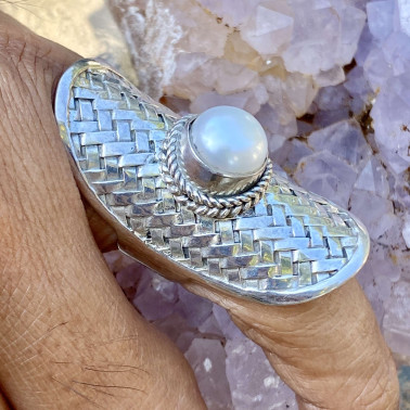 Unique and beautiful 925 Bali Silver Fine Woven Ring with MABE PEARL. Available in US ring size: 7, 8 and 9. Please choose ring size before check out.