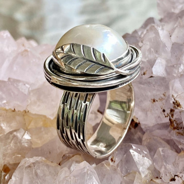 Beautiful Balinese Handmade 925 Silver Rings with WHITE MABE PEARL. The size available FREE SIZE