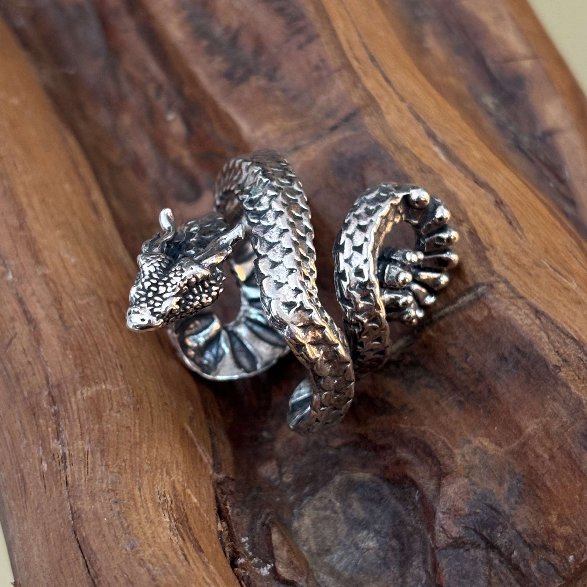 Unique and beautiful 925 Bali Silver Dragon Ring Free Size