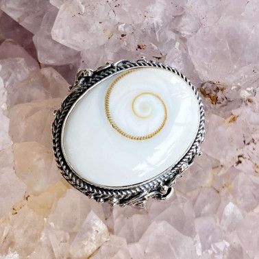 Beautiful Unique 925 Bali Silver Ring with Shiva Eyes Shell.