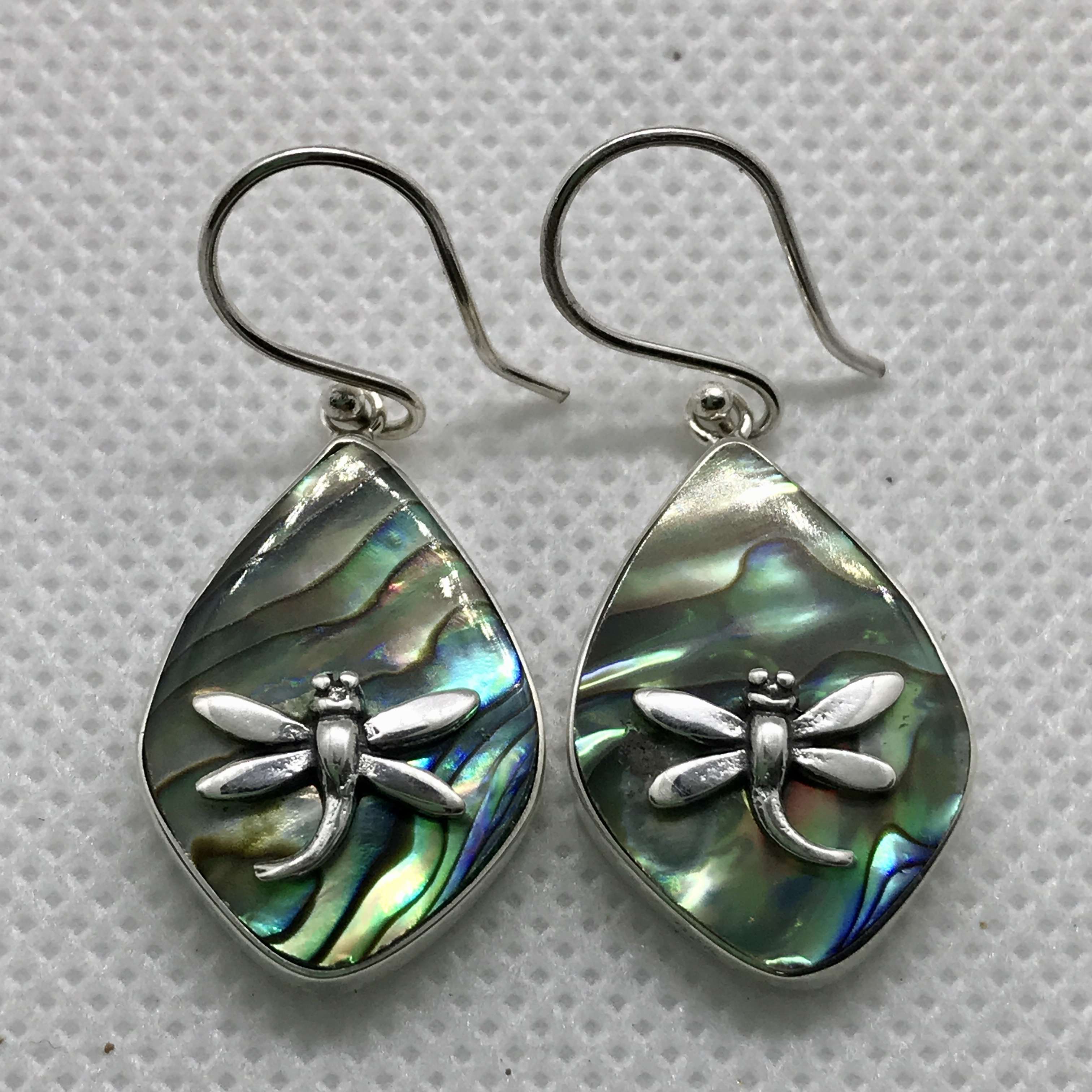 BALI 925 STERLING SILVER DRAGONFLY EARRINGS WITH ABALONE