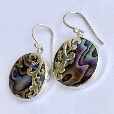 Unique Handmade 925 Bali Sterling Silver Earrings with round ABALONE..