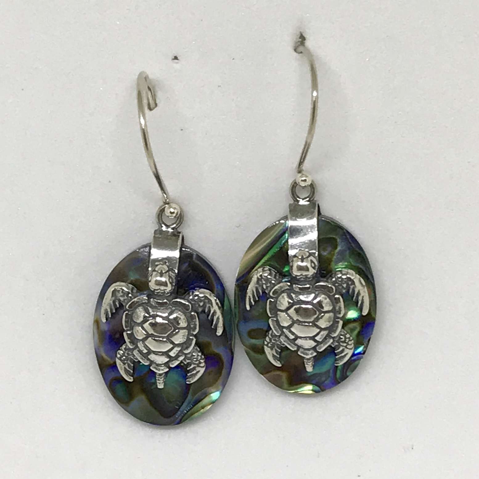 925 Bali silver turtle oval earrings with natural abalone shell.