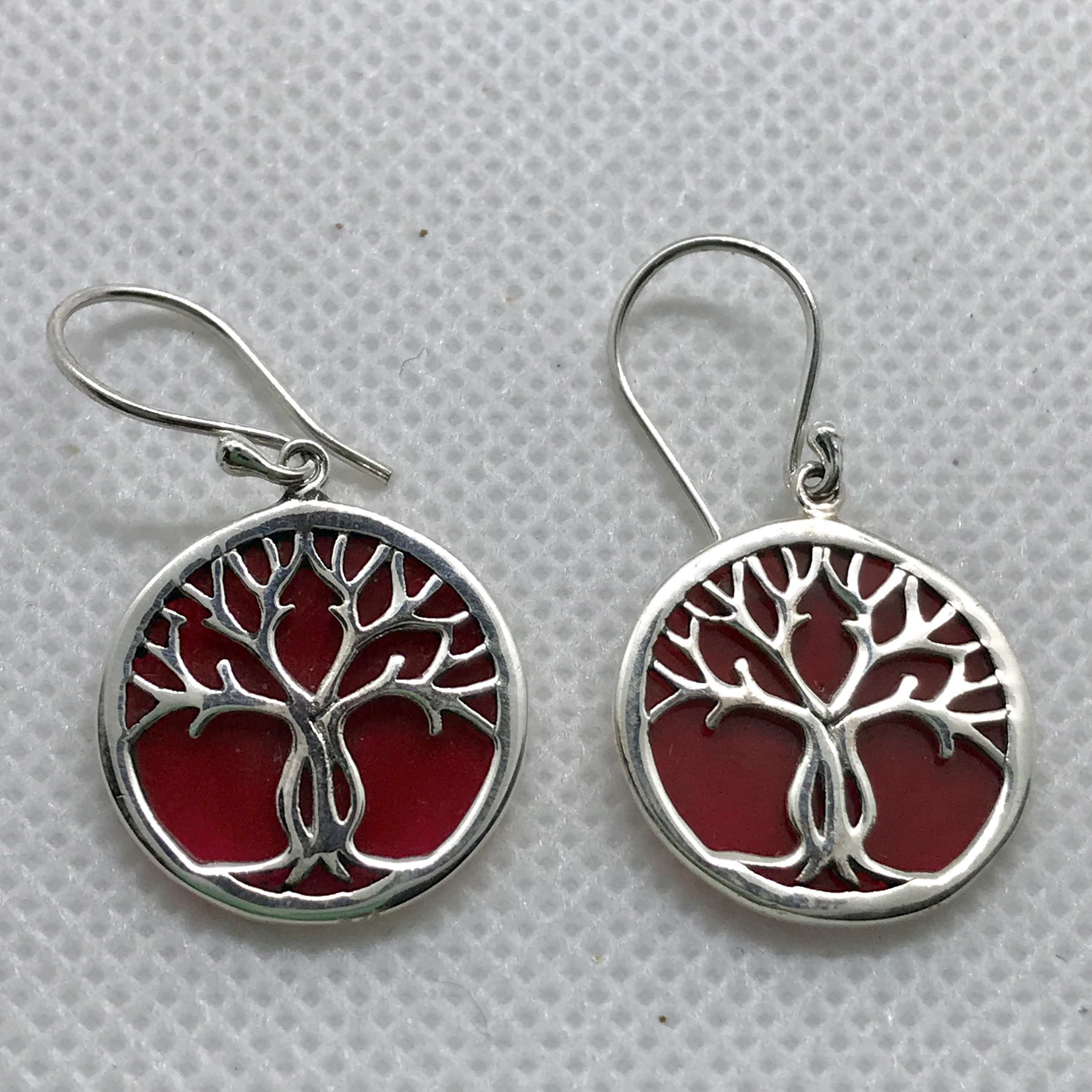 Beautiful Balinese Handmade 925 Silver Tree of Life Earrings with CORAL and ABALONE and MOP