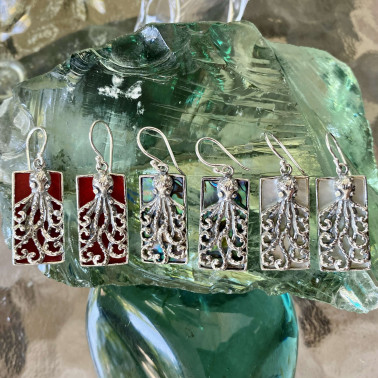 Beautiful Unique Handmade 925 Bali Silver Octopus Earrings With Coral