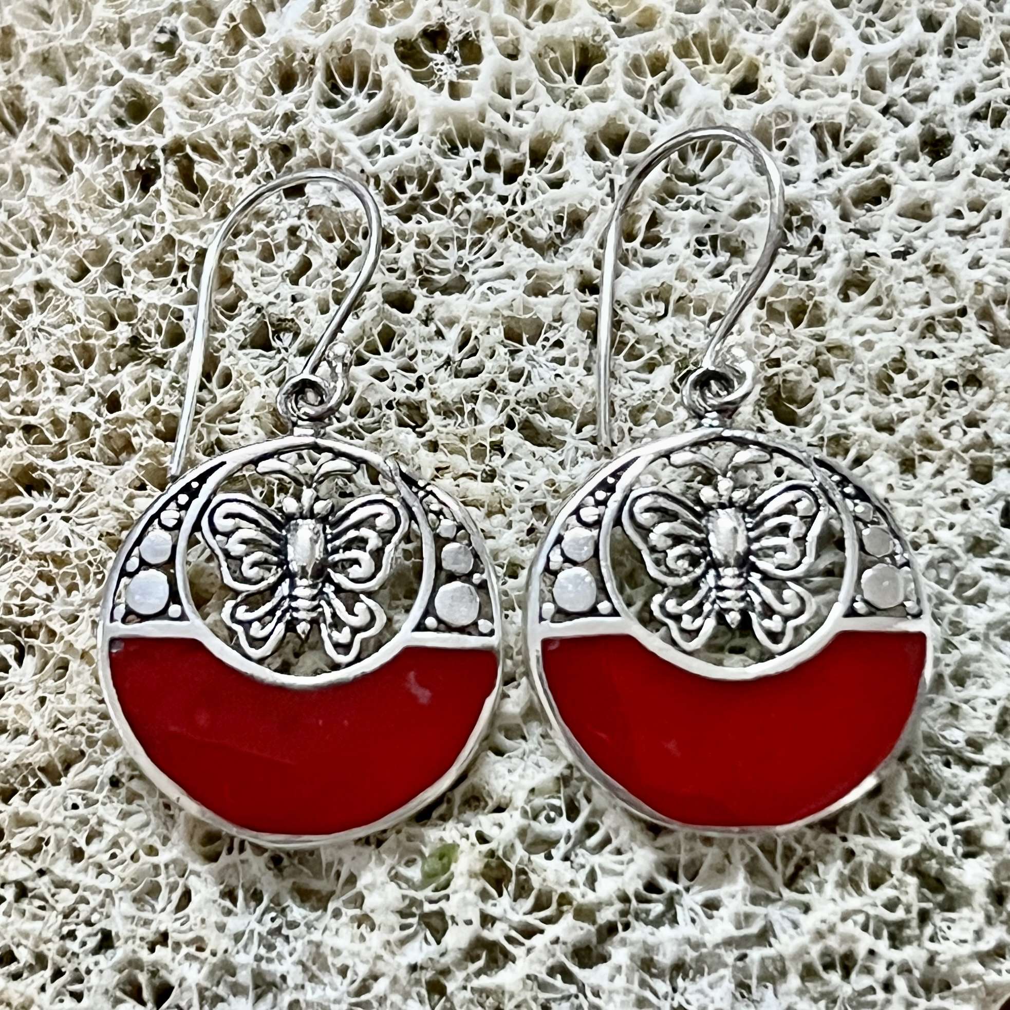 Unique and beautiful 925 Bali Silver Butterfly Earrings with Coral.