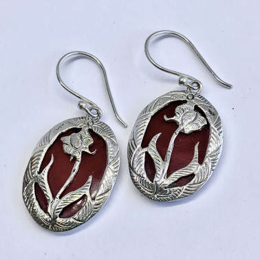 Beautiful Balinese 925 Silver Lotus Flower Earrings with Mother of Pearl.