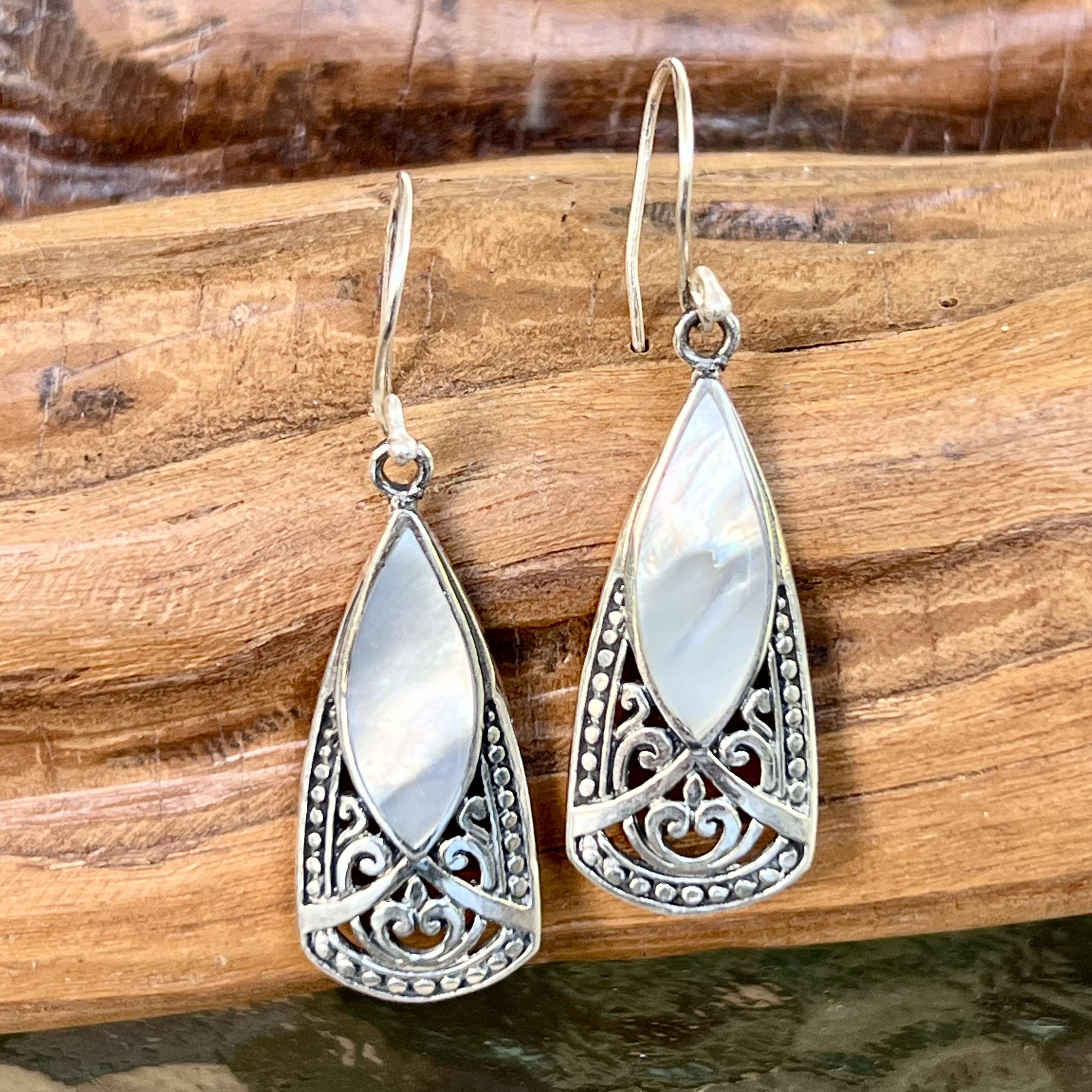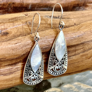 ER 15547 MP-(HANDMADE 925 BALI STERLING SILVER FILIGREE EARRINGS WITH MOTHER OF PEARL)